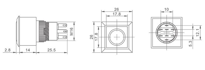头部形状:方形按钮(可带灯)