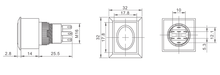 头部形状:矩形按钮(可带灯)